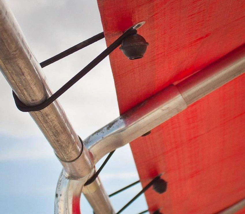 These ball bungees simply pull through your tarp’s grommets and back around the ball to create a secure loop. These can be looped around a canopy pole to install a canopy cover.Â